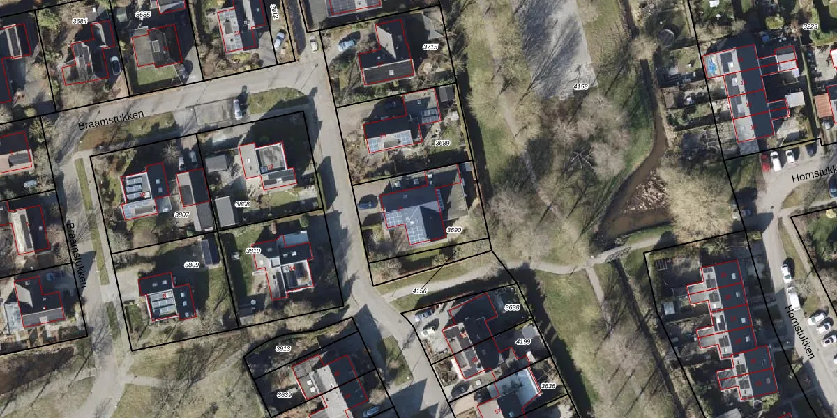 Gebruik de zoekbalk of klik op een perceel voor informatie over de adressen binnen dit perceel.