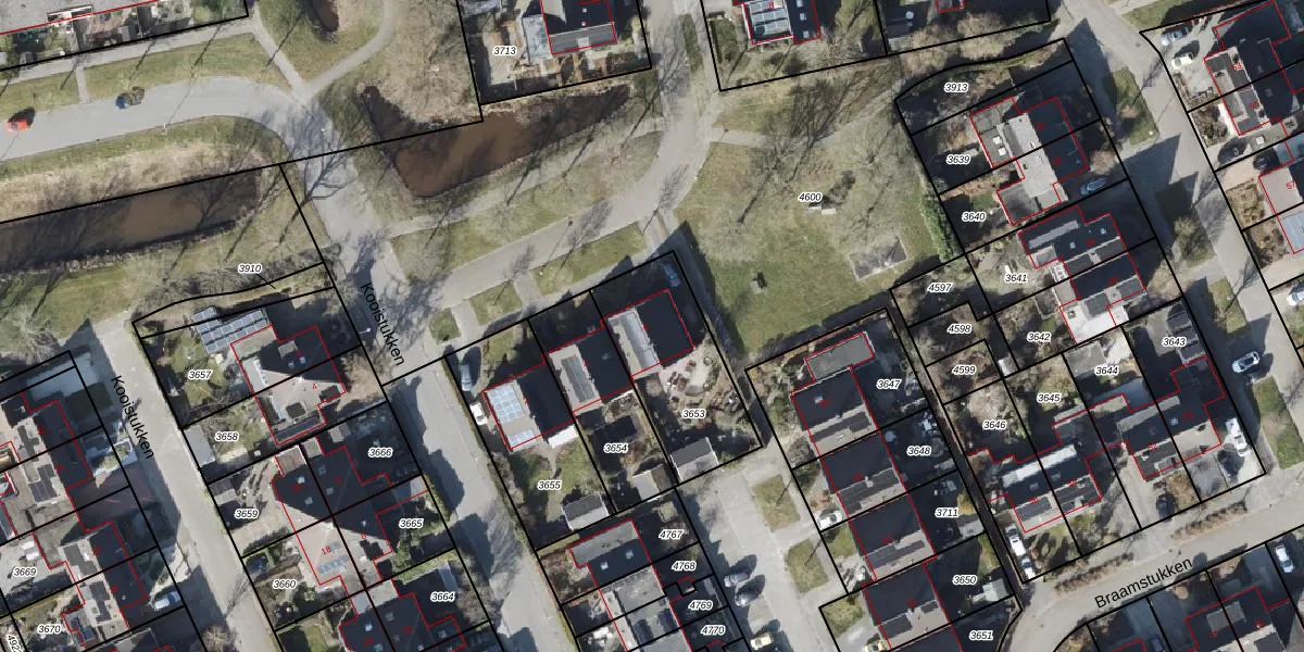 Het perceel waarop Braamstukken 6 staat heeft een oppervlakte van 466 m². Dit is een groot perceel. De perceeloppervlakte wordt geregistreerd door het Kadaster. Gedetailleerde informatie over de maten van dit perceel kunt u vinden in het rapport Kadastrale kaart met maatvoering van Braamstukken 6.