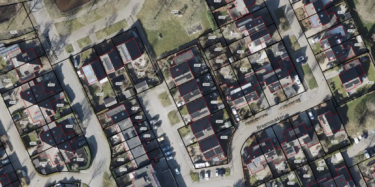 Braamstukken 64 is gelegen op kadastraal perceel EDE02E3648. Deze kadastrale aanduiding is uniek en wordt gebruikt door het Kadaster om eigendomsrechten en andere zakelijke rechten vast te leggen. Het perceel maakt onderdeel uit van de kadastrale gemeente Eelde.