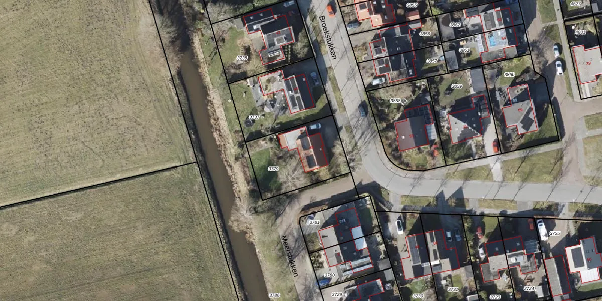 Het perceel waarop Broekstukken 46 staat heeft een oppervlakte van 612 m². Dit is een groot perceel. De perceeloppervlakte wordt geregistreerd door het Kadaster. Gedetailleerde informatie over de maten van dit perceel kunt u vinden in het rapport Kadastrale kaart met maatvoering van Broekstukken 46.