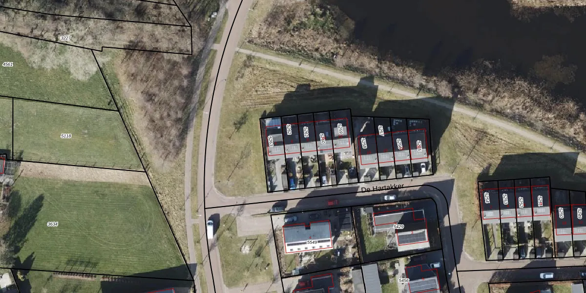 De Hartakker 6 is gelegen op kadastraal perceel EDE02D5262. Deze kadastrale aanduiding is uniek en wordt gebruikt door het Kadaster om eigendomsrechten en andere zakelijke rechten vast te leggen. Het perceel maakt onderdeel uit van de kadastrale gemeente Eelde.
