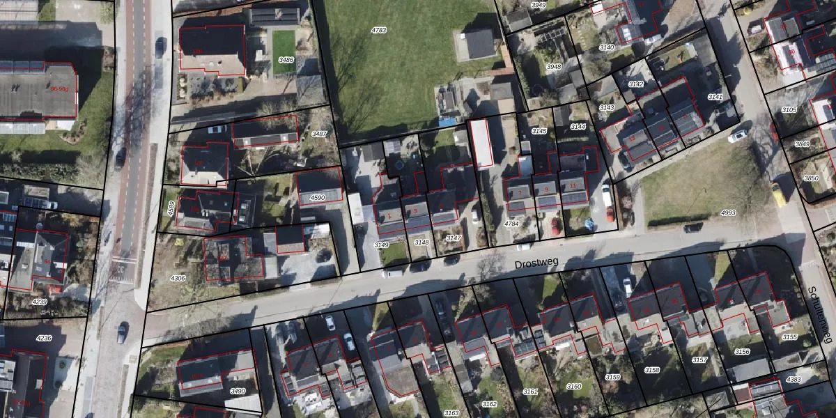 Drostweg 3 is gelegen op kadastraal perceel EDE02D3148. Deze kadastrale aanduiding is uniek en wordt gebruikt door het Kadaster om eigendomsrechten en andere zakelijke rechten vast te leggen. Het perceel maakt onderdeel uit van de kadastrale gemeente Eelde.