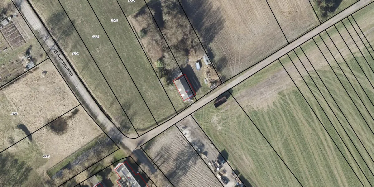 Eskampenweg 2-b is gelegen op kadastraal perceel EDE02D1202. Deze kadastrale aanduiding is uniek en wordt gebruikt door het Kadaster om eigendomsrechten en andere zakelijke rechten vast te leggen. Het perceel maakt onderdeel uit van de kadastrale gemeente Eelde.