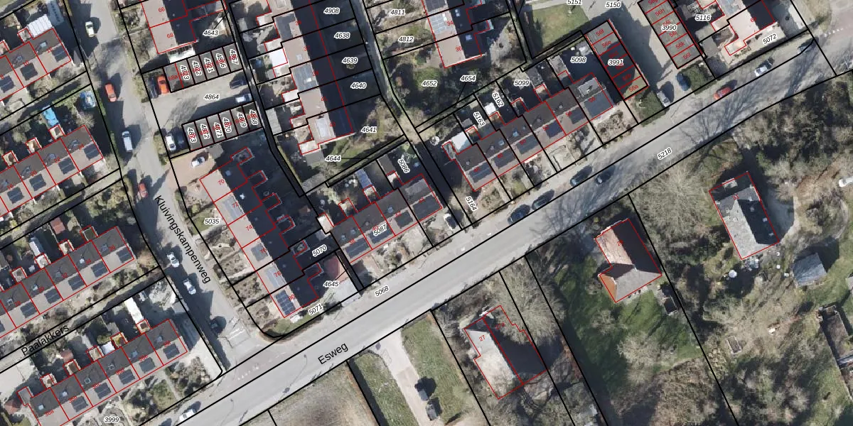Esweg 44 is gelegen op kadastraal perceel EDE02D5086. Deze kadastrale aanduiding is uniek en wordt gebruikt door het Kadaster om eigendomsrechten en andere zakelijke rechten vast te leggen. Het perceel maakt onderdeel uit van de kadastrale gemeente Eelde.