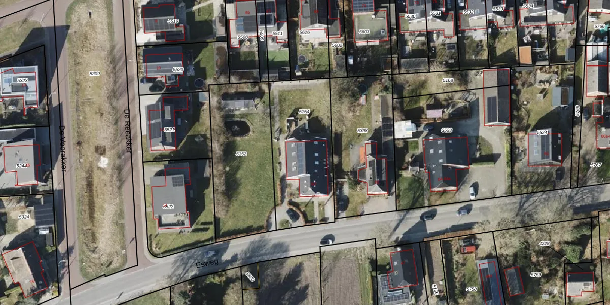 Het perceel waarop Esweg 80 staat heeft een oppervlakte van 955 m². Dit is een groot perceel. De perceeloppervlakte wordt geregistreerd door het Kadaster. Gedetailleerde informatie over de maten van dit perceel kunt u vinden in het rapport Kadastrale kaart met maatvoering van Esweg 80.