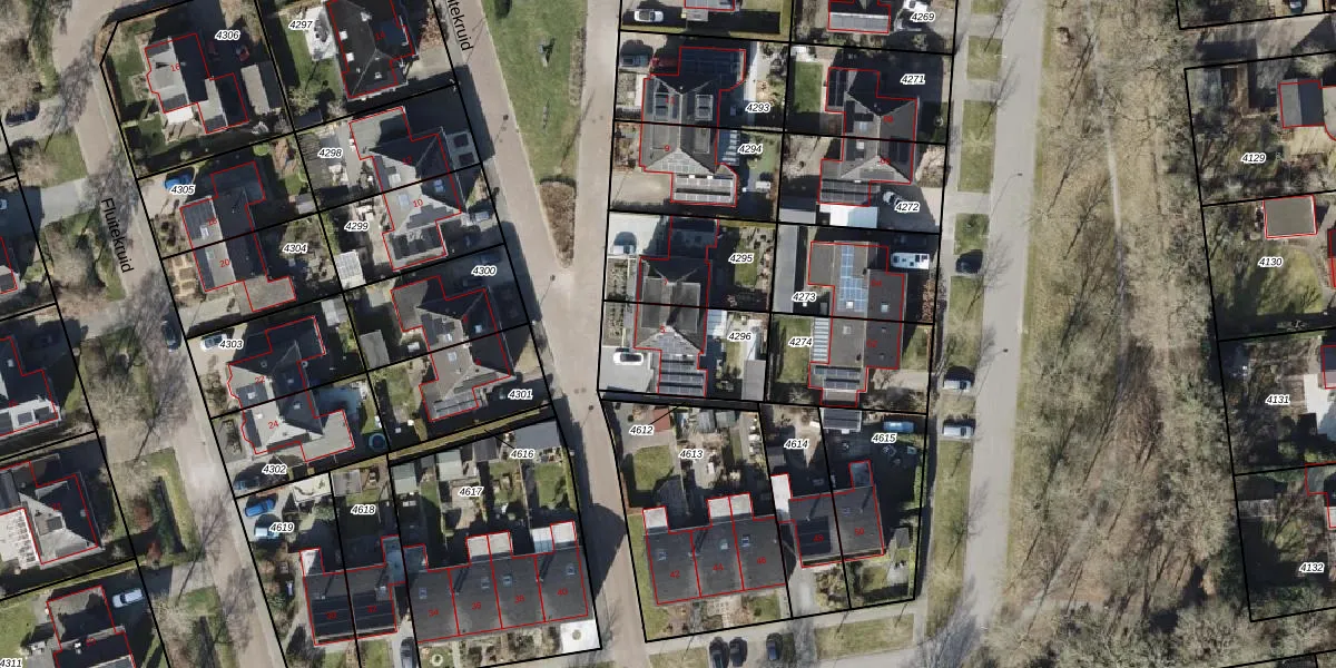 Gebruik de zoekbalk of klik op een perceel voor informatie over de adressen binnen dit perceel.