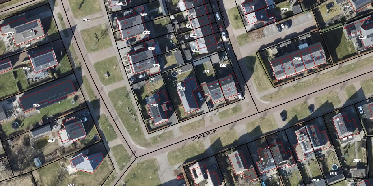 Het perceel waarop Groote Veen 28 staat heeft een oppervlakte van 488 m². Dit is een groot perceel. De perceeloppervlakte wordt geregistreerd door het Kadaster. Gedetailleerde informatie over de maten van dit perceel kunt u vinden in het rapport Kadastrale kaart met maatvoering van Groote Veen 28.