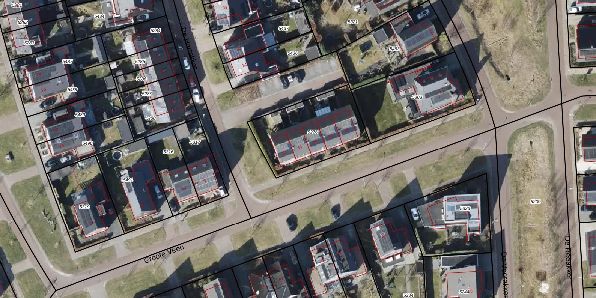 Het perceel waarop Groote Veen 36 staat heeft een oppervlakte van 739 m². Dit is een groot perceel. De perceeloppervlakte wordt geregistreerd door het Kadaster. Gedetailleerde informatie over de maten van dit perceel kunt u vinden in het rapport Kadastrale kaart met maatvoering van Groote Veen 36.
