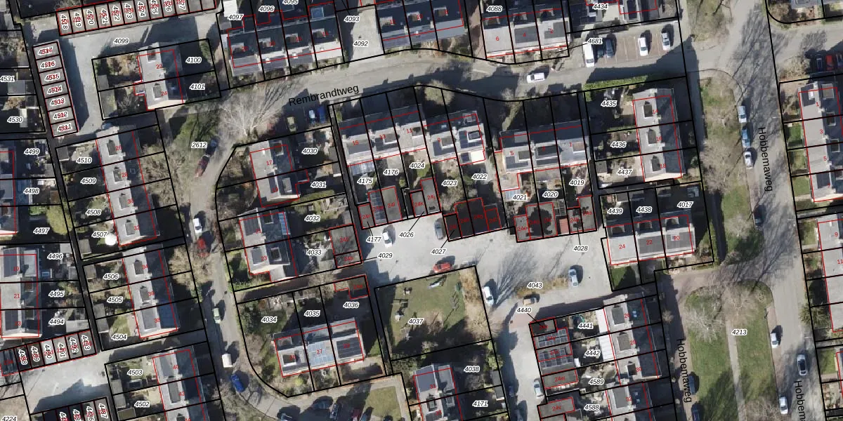 Hobbemaweg 24-k is gelegen op kadastraal perceel EDE02E4026. Deze kadastrale aanduiding is uniek en wordt gebruikt door het Kadaster om eigendomsrechten en andere zakelijke rechten vast te leggen. Het perceel maakt onderdeel uit van de kadastrale gemeente Eelde.