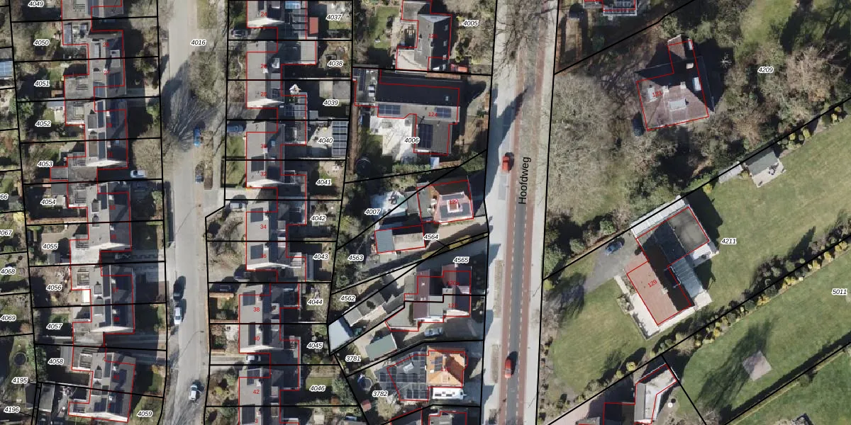 Gebruik de zoekbalk of klik op een perceel voor informatie over de adressen binnen dit perceel.