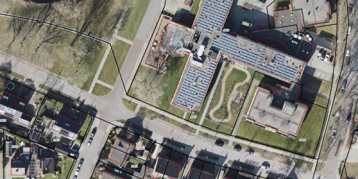 Het perceel waarop Hooiweg 18-4 staat heeft een oppervlakte van 7744 m². Dit is een zeer groot perceel. De perceeloppervlakte wordt geregistreerd door het Kadaster. Gedetailleerde informatie over de maten van dit perceel kunt u vinden in het rapport Kadastrale kaart met maatvoering van Hooiweg 18-4.