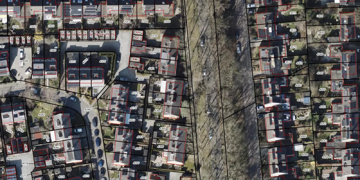 Gebruik de zoekbalk of klik op een perceel voor informatie over de adressen binnen dit perceel.