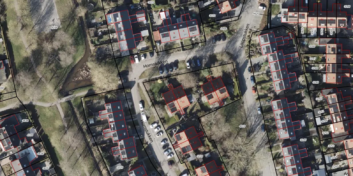 Hornstukken 5 is gelegen op kadastraal perceel EDE02E3224. Deze kadastrale aanduiding is uniek en wordt gebruikt door het Kadaster om eigendomsrechten en andere zakelijke rechten vast te leggen. Het perceel maakt onderdeel uit van de kadastrale gemeente Eelde.