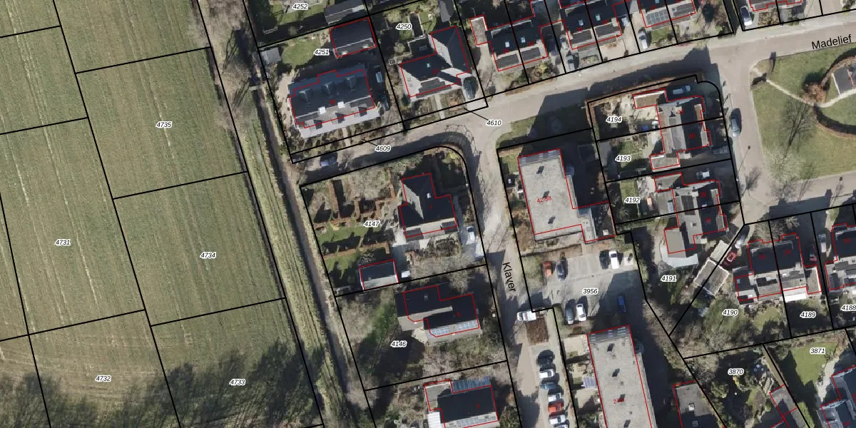 Het perceel waarop Klaver 7 staat heeft een oppervlakte van 1059 m². Dit is een zeer groot perceel. De perceeloppervlakte wordt geregistreerd door het Kadaster. Gedetailleerde informatie over de maten van dit perceel kunt u vinden in het rapport Kadastrale kaart met maatvoering van Klaver 7.