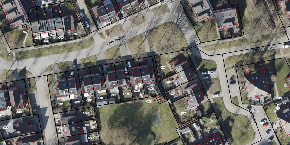 Kooistukken 82 is gelegen op kadastraal perceel EDE02E3562. Deze kadastrale aanduiding is uniek en wordt gebruikt door het Kadaster om eigendomsrechten en andere zakelijke rechten vast te leggen. Het perceel maakt onderdeel uit van de kadastrale gemeente Eelde.
