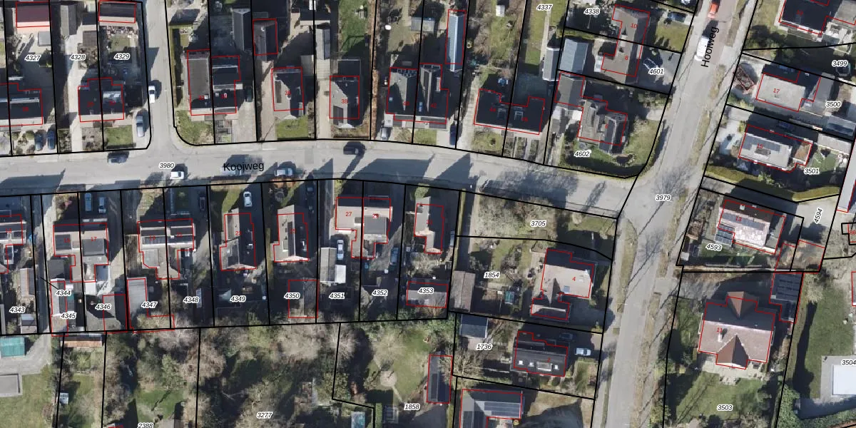 Het perceel waarop Kooiweg 31 staat heeft een oppervlakte van 378 m². Dit is een groot perceel. De perceeloppervlakte wordt geregistreerd door het Kadaster. Gedetailleerde informatie over de maten van dit perceel kunt u vinden in het rapport Kadastrale kaart met maatvoering van Kooiweg 31.
