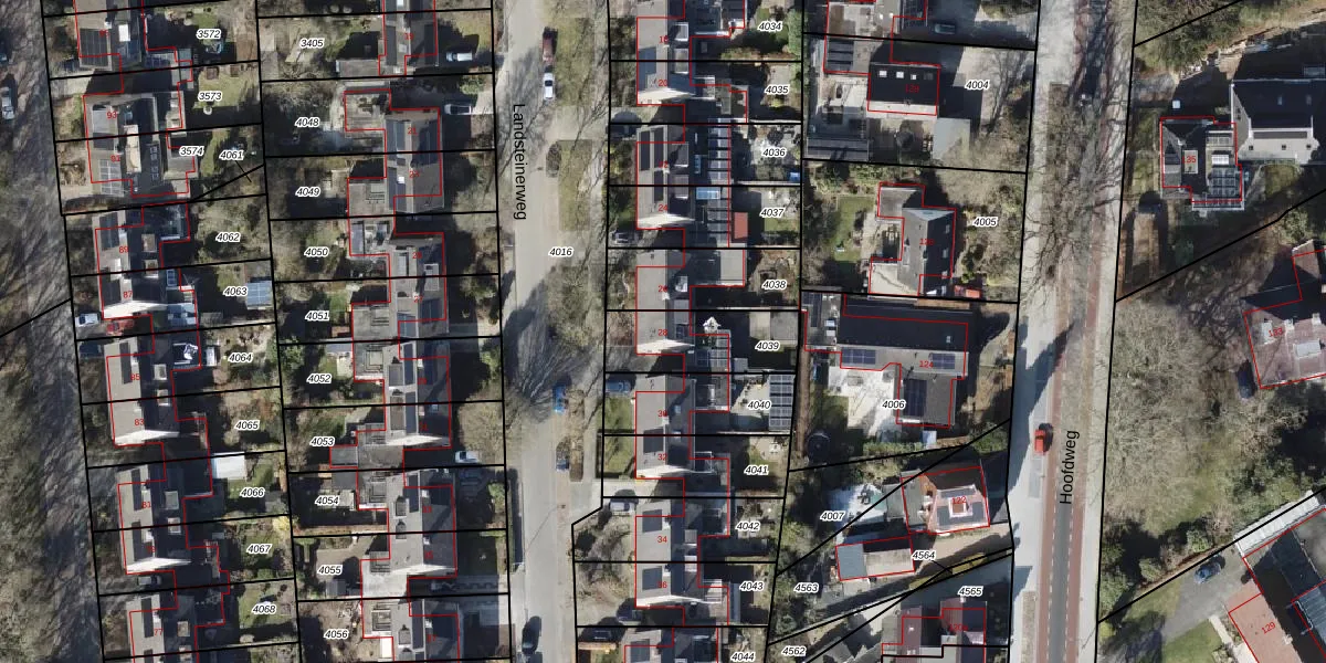 Gebruik de zoekbalk of klik op een perceel voor informatie over de adressen binnen dit perceel.