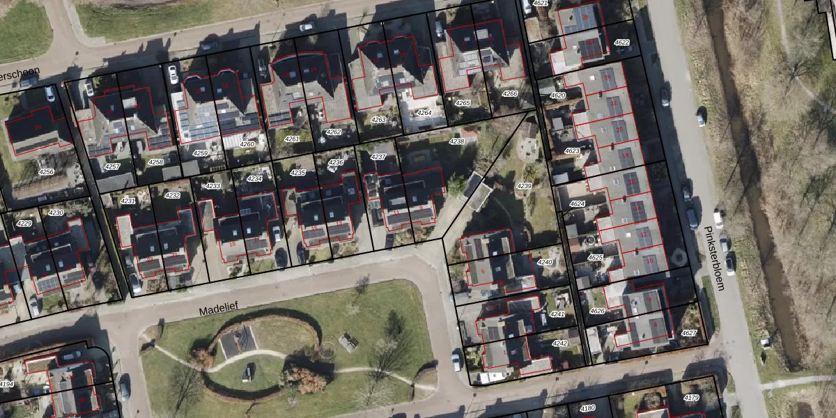 Het perceel waarop Madelief 9 staat heeft een oppervlakte van 506 m². Dit is een groot perceel. De perceeloppervlakte wordt geregistreerd door het Kadaster. Gedetailleerde informatie over de maten van dit perceel kunt u vinden in het rapport Kadastrale kaart met maatvoering van Madelief 9.