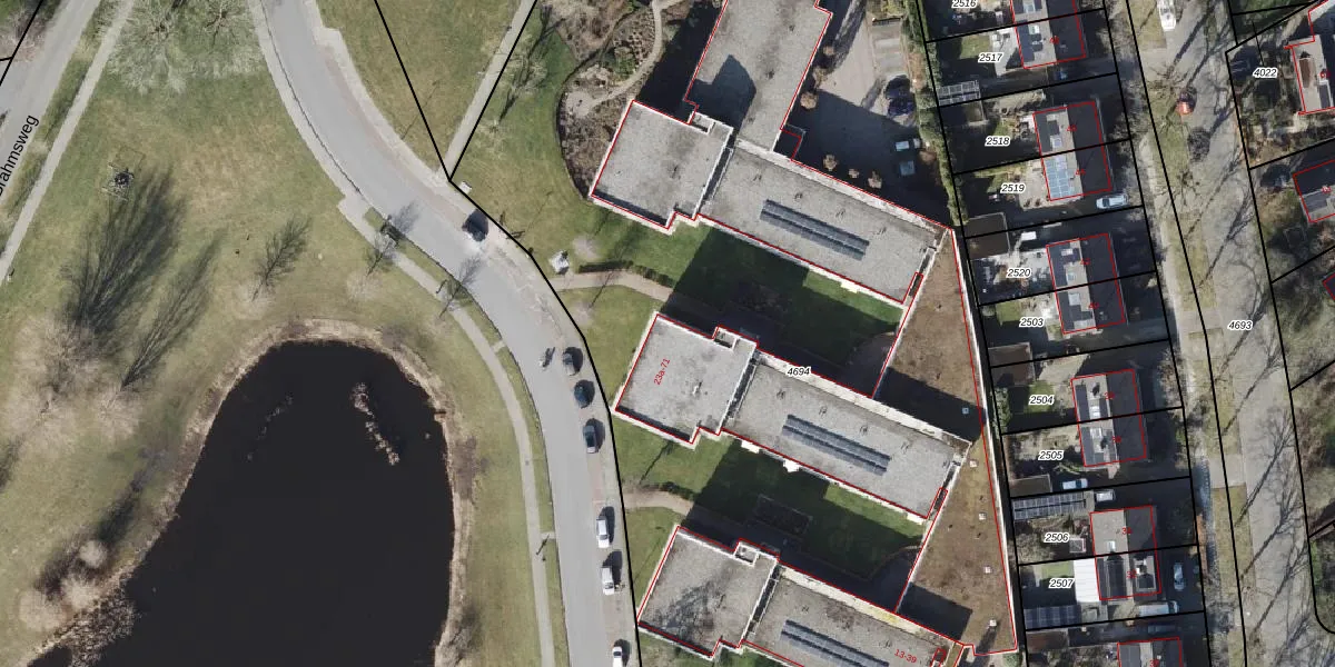 Het perceel waarop het adres ligt is EDE02-E-4694. De afkorting 'EDE02' staat voor kadastrale gemeente Eelde. Het perceel is met 1,0 ha relatief groot. Het gemiddelde ligt in de kadastrale gemeente Eelde op 2994,08 m². Het kleinste perceel in de kadastrale gemeente is 0 m² groot. De grootste perceeloppervlakte is 91,4 ha. Op het perceel zijn 69 adressen aanwezig. De huidige grenzen van het perceel zijn digitaal in de Basisregistratie Kadaster (BRK) geregistreerd op 14-09-2007.