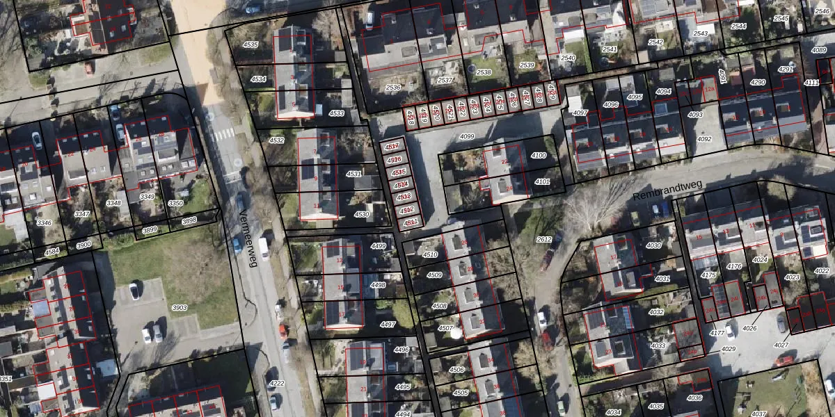 Het perceel waarop Rembrandtweg 20-r staat heeft een oppervlakte van 19 m². Dit is een klein perceel. De perceeloppervlakte wordt geregistreerd door het Kadaster. Gedetailleerde informatie over de maten van dit perceel kunt u vinden in het rapport Kadastrale kaart met maatvoering van Rembrandtweg 20-r.