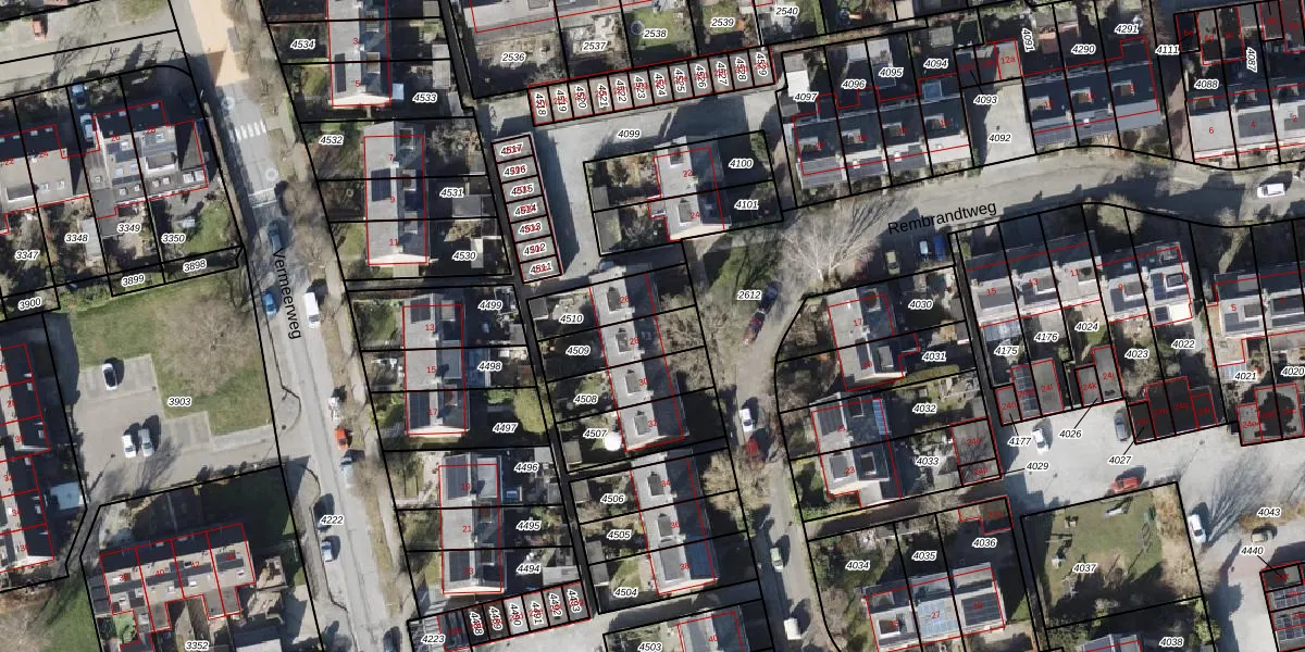 Rembrandtweg 28 is gelegen op kadastraal perceel EDE02E4509. Deze kadastrale aanduiding is uniek en wordt gebruikt door het Kadaster om eigendomsrechten en andere zakelijke rechten vast te leggen. Het perceel maakt onderdeel uit van de kadastrale gemeente Eelde.