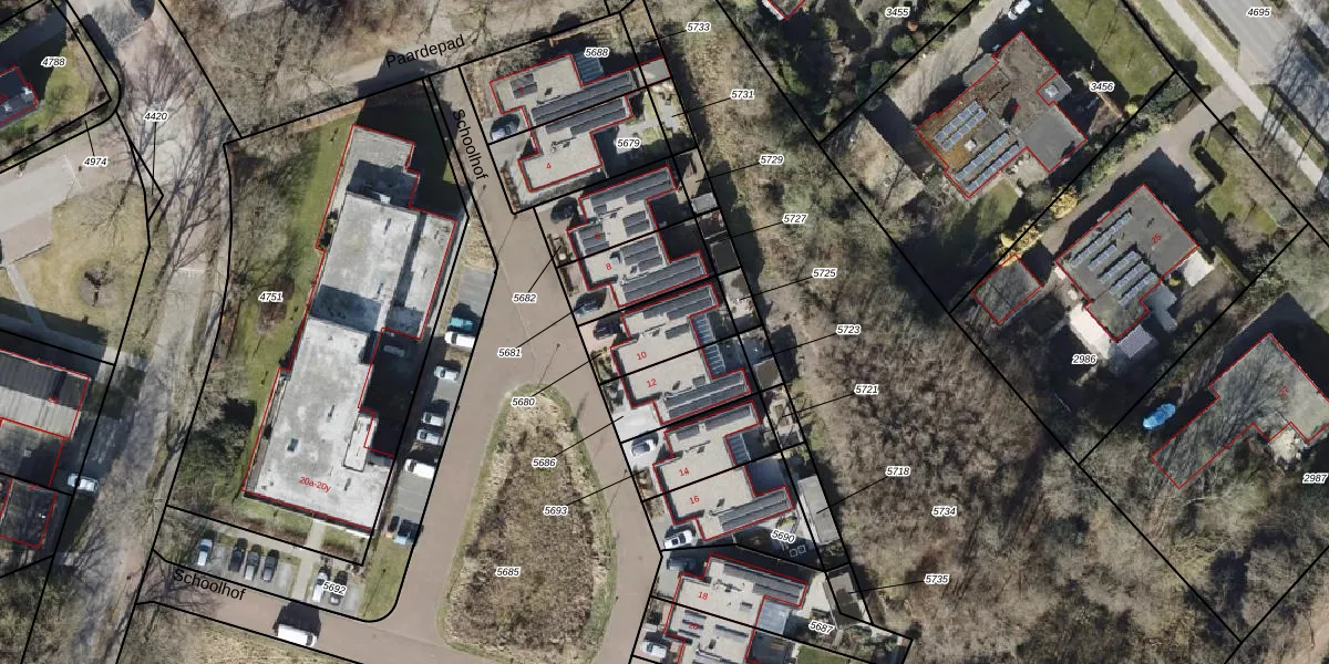 Het perceel waarop Schoolhof 10 staat heeft een oppervlakte van 210 m². Dit is een middelgroot perceel. De perceeloppervlakte wordt geregistreerd door het Kadaster. Gedetailleerde informatie over de maten van dit perceel kunt u vinden in het rapport Kadastrale kaart met maatvoering van Schoolhof 10.