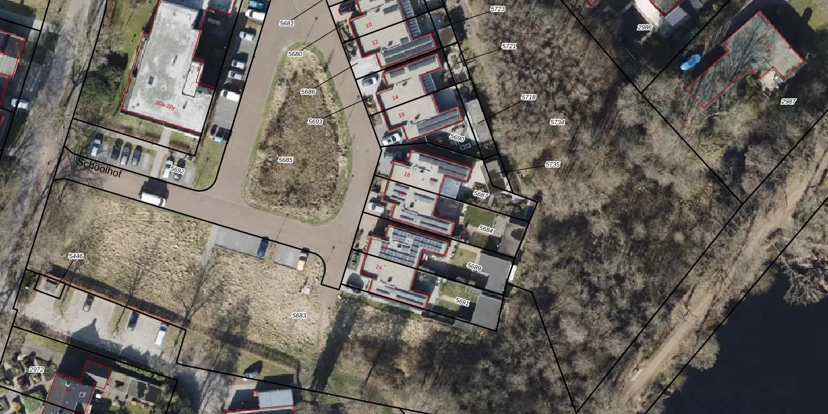 Het perceel waarop Schoolhof 20 staat heeft een oppervlakte van 362 m². Dit is een groot perceel. De perceeloppervlakte wordt geregistreerd door het Kadaster. Gedetailleerde informatie over de maten van dit perceel kunt u vinden in het rapport Kadastrale kaart met maatvoering van Schoolhof 20.