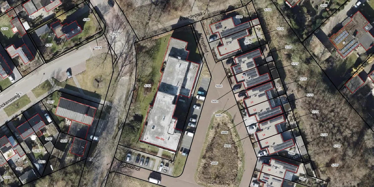 Het perceel waarop Schoollaan 20-u staat heeft een oppervlakte van 2075 m². Dit is een zeer groot perceel. De perceeloppervlakte wordt geregistreerd door het Kadaster. Gedetailleerde informatie over de maten van dit perceel kunt u vinden in het rapport Kadastrale kaart met maatvoering van Schoollaan 20-u.