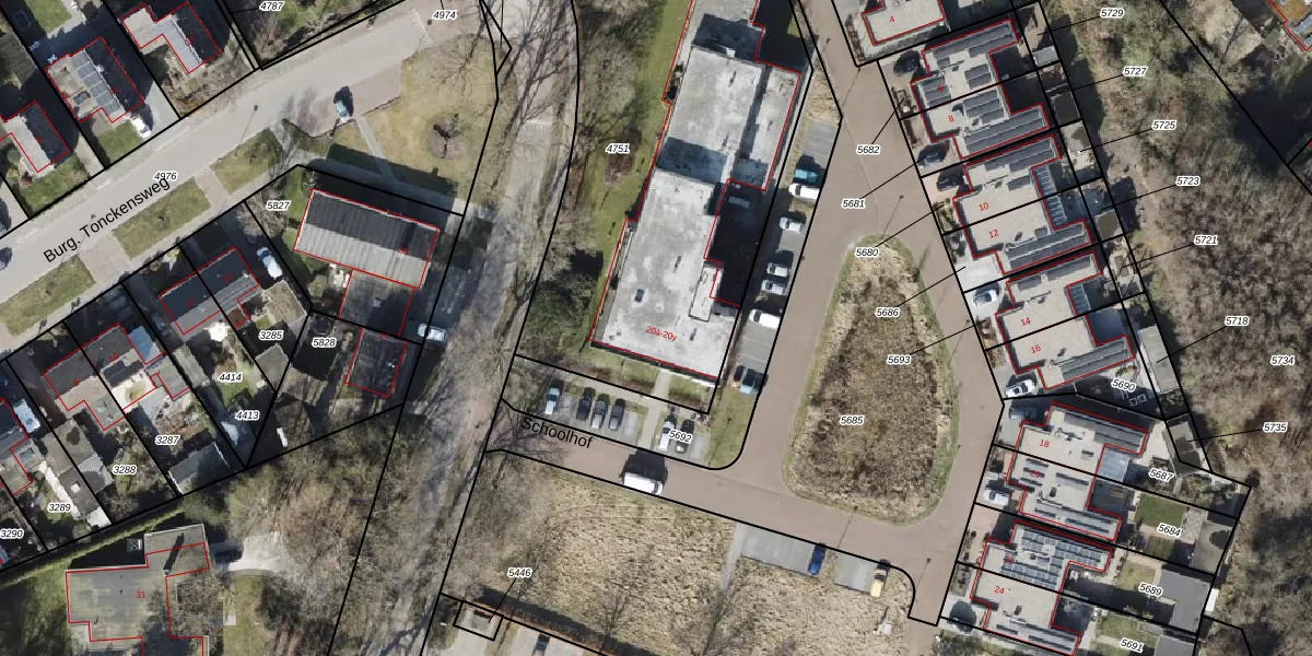 Schoollaan 20-h is gelegen op kadastraal perceel EDE02D4751. Deze kadastrale aanduiding is uniek en wordt gebruikt door het Kadaster om eigendomsrechten en andere zakelijke rechten vast te leggen. Het perceel maakt onderdeel uit van de kadastrale gemeente Eelde.