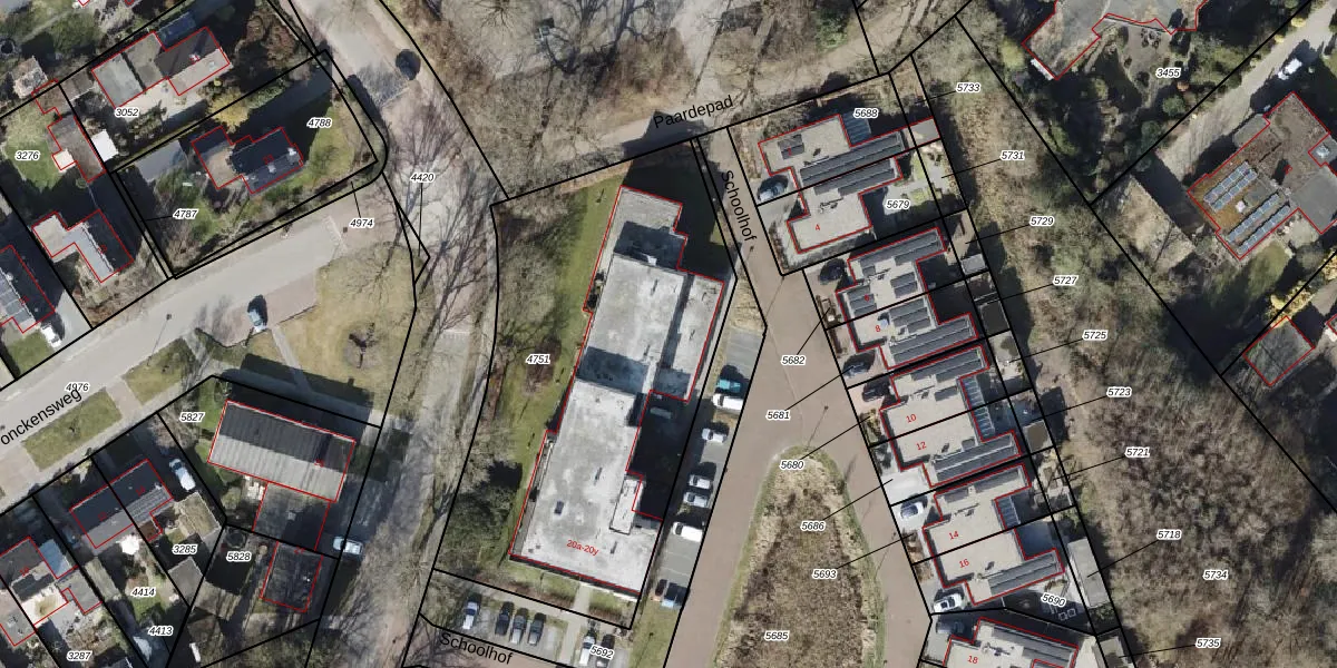 Het perceel waarop Schoollaan 20-s staat heeft een oppervlakte van 2075 m². Dit is een zeer groot perceel. De perceeloppervlakte wordt geregistreerd door het Kadaster. Gedetailleerde informatie over de maten van dit perceel kunt u vinden in het rapport Kadastrale kaart met maatvoering van Schoollaan 20-s.