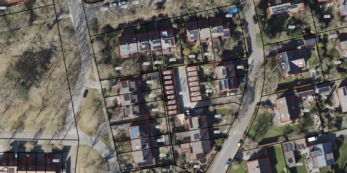 Schubertweg 12-f is gelegen op kadastraal perceel EDE02E3009. Deze kadastrale aanduiding is uniek en wordt gebruikt door het Kadaster om eigendomsrechten en andere zakelijke rechten vast te leggen. Het perceel maakt onderdeel uit van de kadastrale gemeente Eelde.
