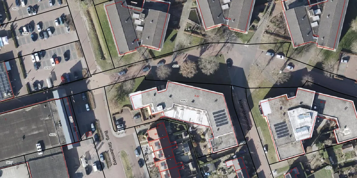 Het adres ligt op het perceel EDE02-D-4942, dat zich in de kadastrale gemeente Eelde bevindt. Het perceel is kleiner dan gemiddeld in Eelde. Het perceel is 2147 m² groot, terwijl het gemiddelde ligt op 2994,44 m². Het grootste perceel in de kadastrale gemeente is 91,4 ha. Het kleinste perceel heeft een oppervlakte van 0 m². Op het perceel zijn 18 adressen aanwezig. De laatste wijziging in het de Basisregistratie Kadaster (BRK) was op 28-06-2006.