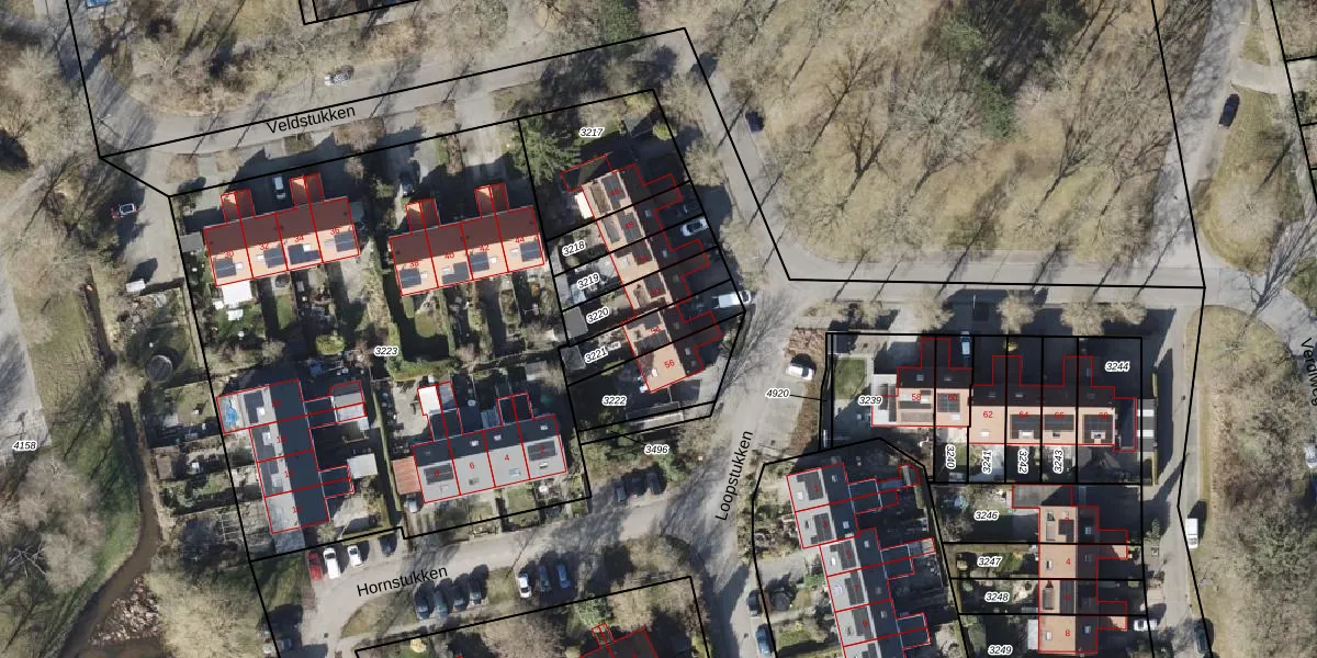 Veldstukken 54 is gelegen op kadastraal perceel EDE02E3221. Deze kadastrale aanduiding is uniek en wordt gebruikt door het Kadaster om eigendomsrechten en andere zakelijke rechten vast te leggen. Het perceel maakt onderdeel uit van de kadastrale gemeente Eelde.