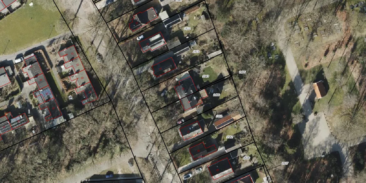 Het perceel waarop Vosbergerlaan 25 staat heeft een oppervlakte van 620 m². Dit is een groot perceel. De perceeloppervlakte wordt geregistreerd door het Kadaster. Gedetailleerde informatie over de maten van dit perceel kunt u vinden in het rapport Kadastrale kaart met maatvoering van Vosbergerlaan 25.