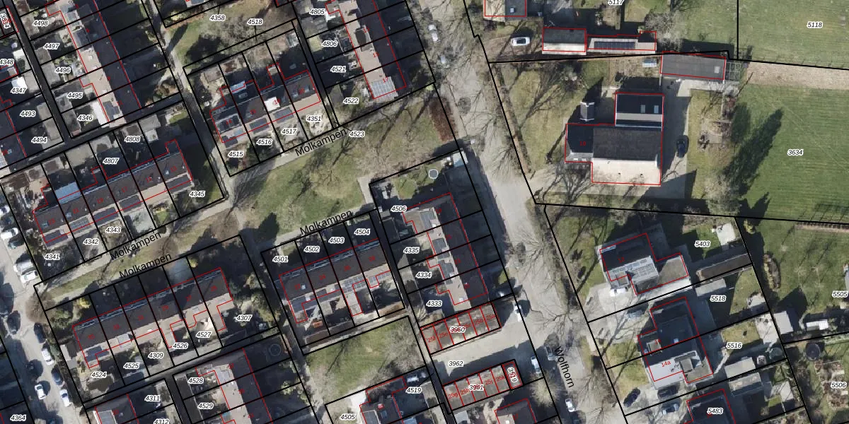 Het perceel waarop Wolfhorn 19 staat heeft een oppervlakte van 351 m². Dit is een groot perceel. De perceeloppervlakte wordt geregistreerd door het Kadaster. Gedetailleerde informatie over de maten van dit perceel kunt u vinden in het rapport Kadastrale kaart met maatvoering van Wolfhorn 19.
