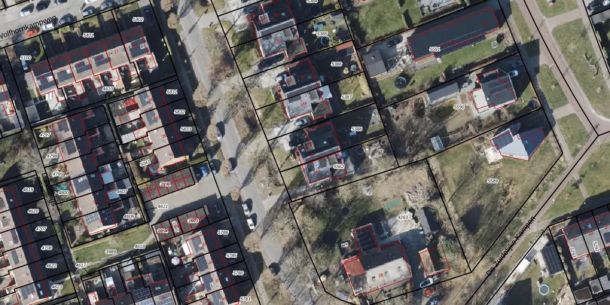 Het adres is gelegen op perceel 5388 in de sectie D en de kadastrale gemeente Eelde. De kadastrale aanduiding is aldus EDE02-D-5388. Het perceel is kleiner dan gemiddeld in Eelde. Het perceel is 412 m² groot, terwijl het gemiddelde ligt op 2994,08 m². Het grootste perceel in de kadastrale gemeente is 91,4 ha. Het kleinste perceel heeft een oppervlakte van 0 m². Er zijn geen andere adressen aanwezig op het perceel. De huidige grenzen van het perceel zijn digitaal in de Basisregistratie Kadaster (BRK) geregistreerd op 31-07-2018.