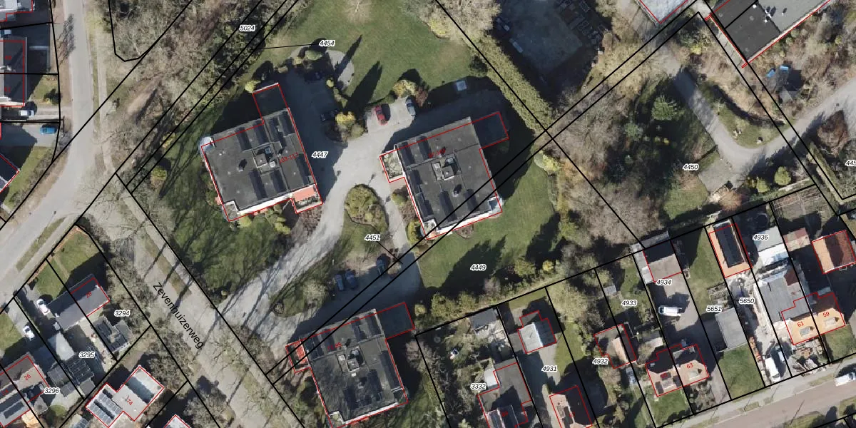 Zevenhuizerweg 91 is gelegen op kadastraal perceel EDE02D4447. Deze kadastrale aanduiding is uniek en wordt gebruikt door het Kadaster om eigendomsrechten en andere zakelijke rechten vast te leggen. Het perceel maakt onderdeel uit van de kadastrale gemeente Eelde.