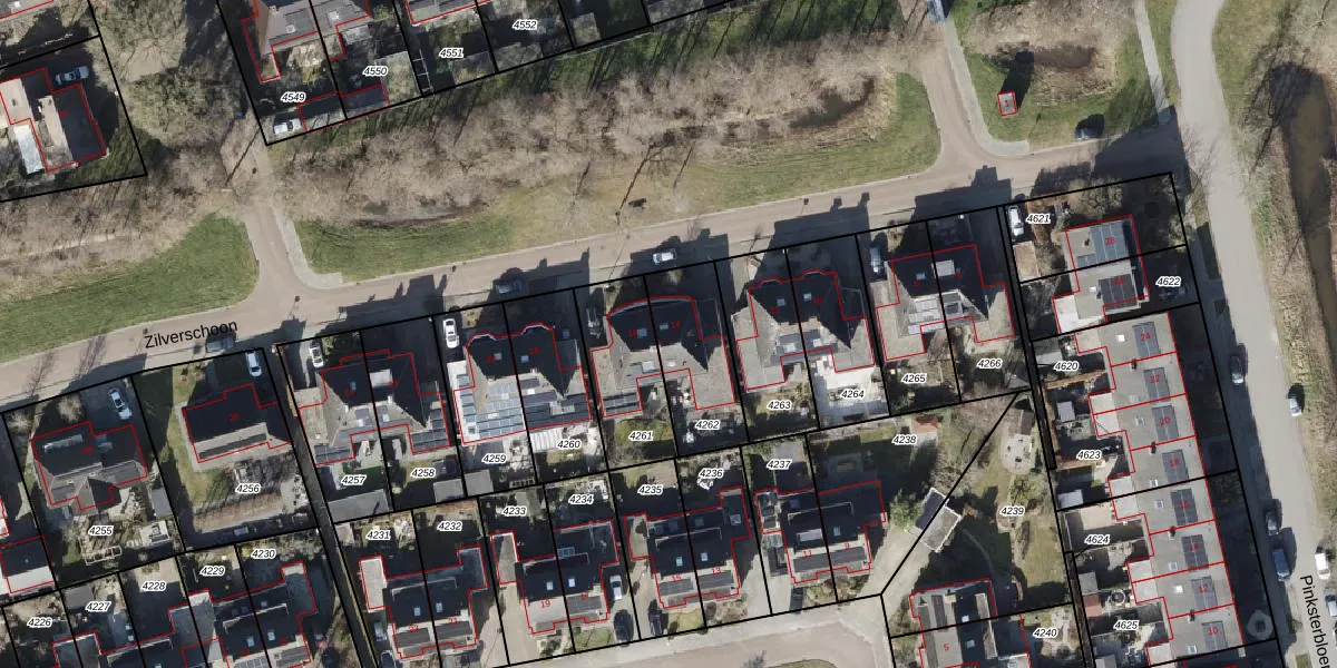 Zilverschoon 14 is gelegen op kadastraal perceel EDE02E4262. Deze kadastrale aanduiding is uniek en wordt gebruikt door het Kadaster om eigendomsrechten en andere zakelijke rechten vast te leggen. Het perceel maakt onderdeel uit van de kadastrale gemeente Eelde.