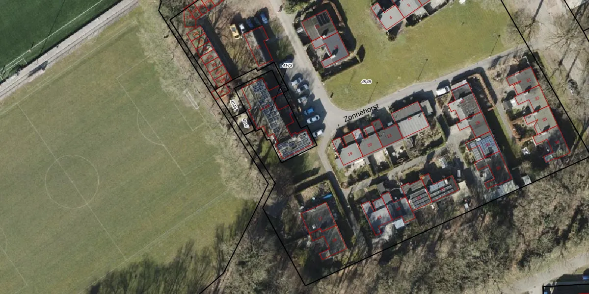 Het perceel waarop Zonnehorst 16-e staat heeft een oppervlakte van 402 m². Dit is een groot perceel. De perceeloppervlakte wordt geregistreerd door het Kadaster. Gedetailleerde informatie over de maten van dit perceel kunt u vinden in het rapport Kadastrale kaart met maatvoering van Zonnehorst 16-e.