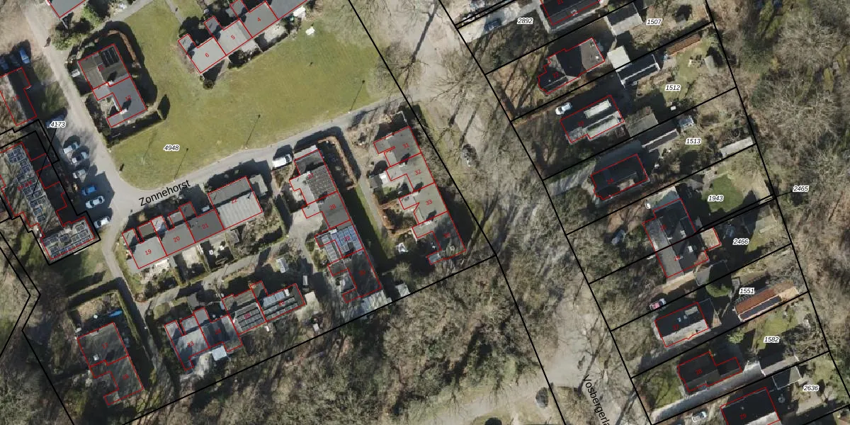 Het perceel waarop Zonnehorst 33 staat heeft een oppervlakte van 1,1 ha. Dit is een zeer groot perceel. De perceeloppervlakte wordt geregistreerd door het Kadaster. Gedetailleerde informatie over de maten van dit perceel kunt u vinden in het rapport Kadastrale kaart met maatvoering van Zonnehorst 33.