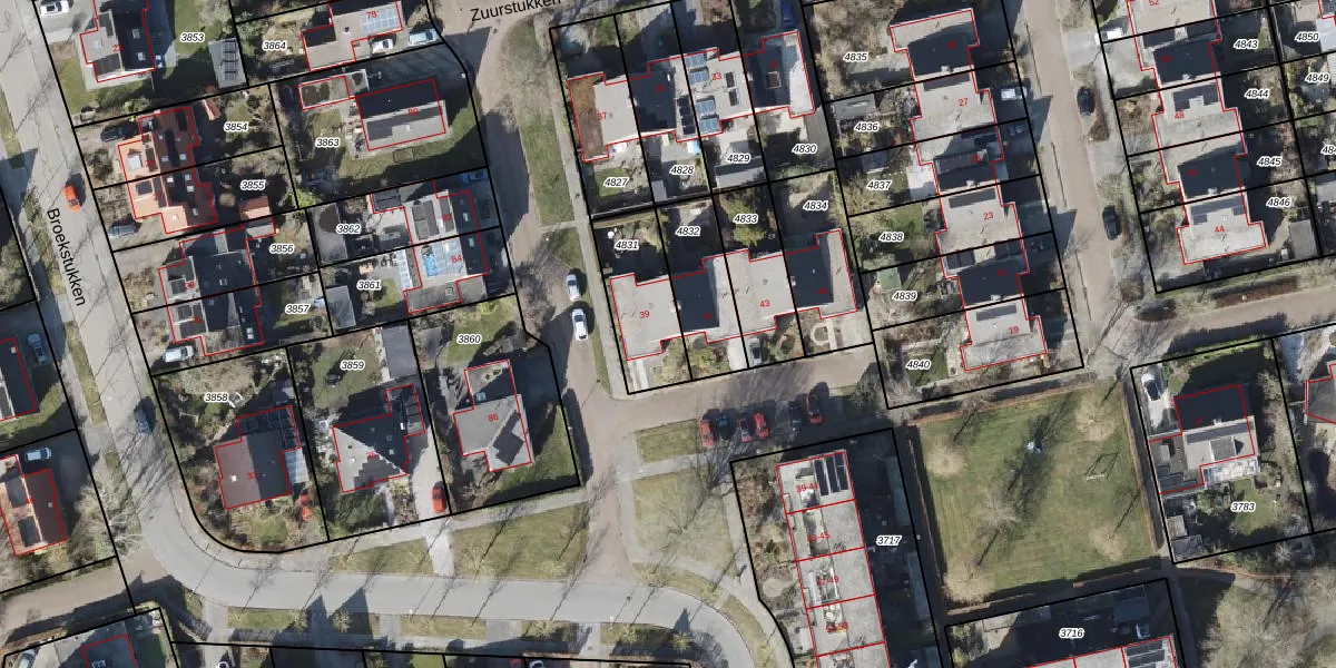 Zuurstukken 39 is gelegen op kadastraal perceel EDE02E4831. Deze kadastrale aanduiding is uniek en wordt gebruikt door het Kadaster om eigendomsrechten en andere zakelijke rechten vast te leggen. Het perceel maakt onderdeel uit van de kadastrale gemeente Eelde.