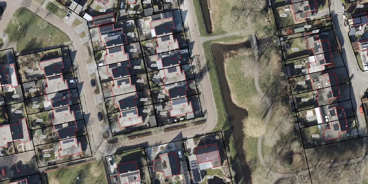 Gebruik de zoekbalk of klik op een perceel voor informatie over de adressen binnen dit perceel.