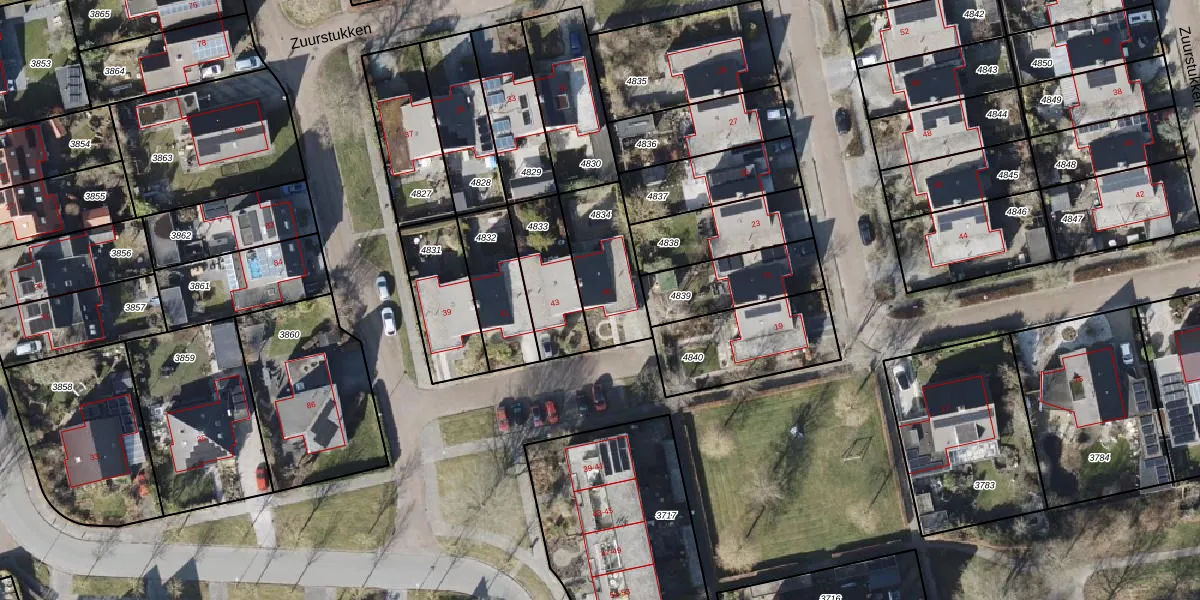 Zuurstukken 45 is gelegen op kadastraal perceel EDE02E4834. Deze kadastrale aanduiding is uniek en wordt gebruikt door het Kadaster om eigendomsrechten en andere zakelijke rechten vast te leggen. Het perceel maakt onderdeel uit van de kadastrale gemeente Eelde.