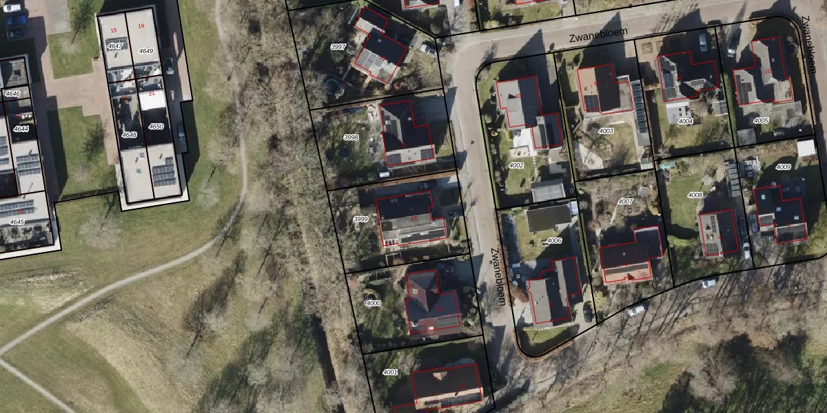 Het perceel waarop Zwanebloem 23 staat heeft een oppervlakte van 639 m². Dit is een groot perceel. De perceeloppervlakte wordt geregistreerd door het Kadaster. Gedetailleerde informatie over de maten van dit perceel kunt u vinden in het rapport Kadastrale kaart met maatvoering van Zwanebloem 23.