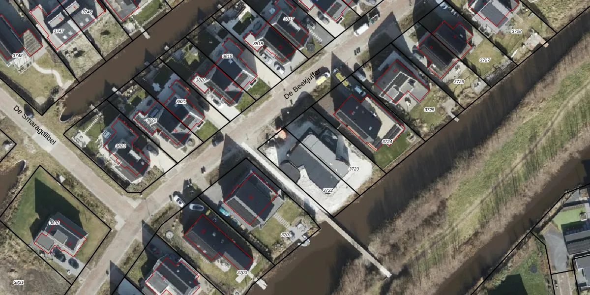De Beekjuffer 16 is gelegen op kadastraal perceel EDE02A3722. Deze kadastrale aanduiding is uniek en wordt gebruikt door het Kadaster om eigendomsrechten en andere zakelijke rechten vast te leggen. Het perceel maakt onderdeel uit van de kadastrale gemeente Eelde.