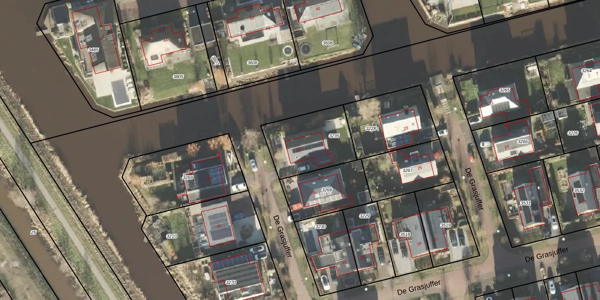 Het perceel waarop De Grasjuffer 37 staat heeft een oppervlakte van 523 m². Dit is een groot perceel. De perceeloppervlakte wordt geregistreerd door het Kadaster. Gedetailleerde informatie over de maten van dit perceel kunt u vinden in het rapport Kadastrale kaart met maatvoering van De Grasjuffer 37.