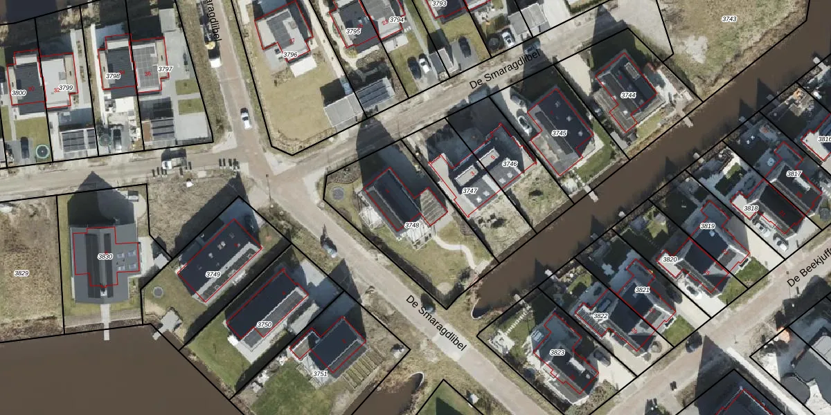 Het perceel waarop De Smaragdlibel 1 staat heeft een oppervlakte van 827 m². Dit is een groot perceel. De perceeloppervlakte wordt geregistreerd door het Kadaster. Gedetailleerde informatie over de maten van dit perceel kunt u vinden in het rapport Kadastrale kaart met maatvoering van De Smaragdlibel 1.