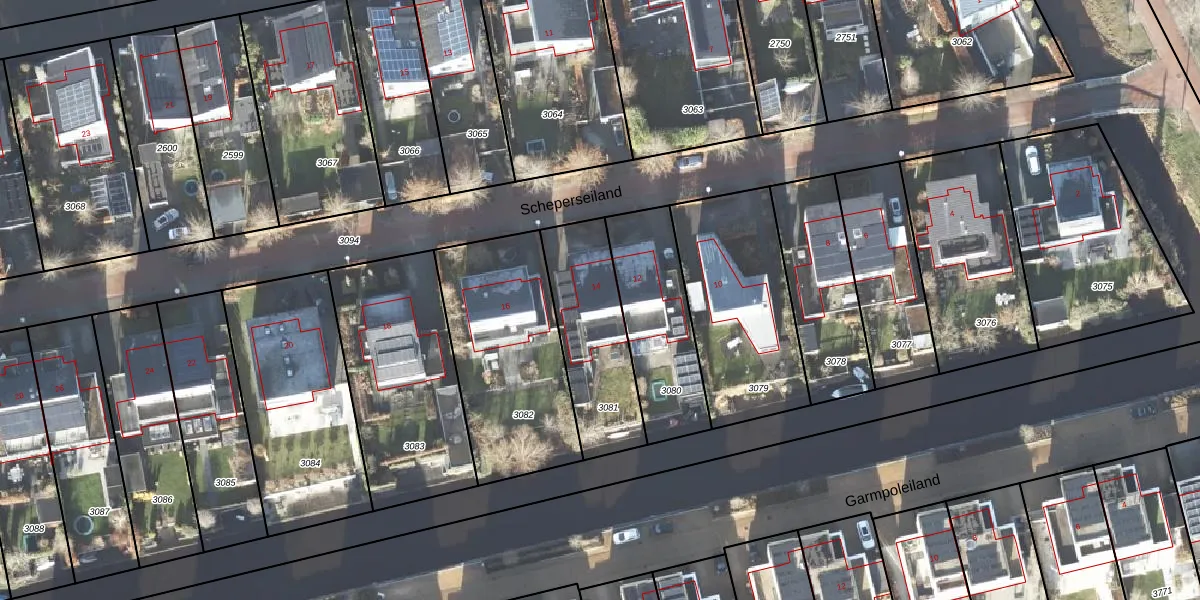Gebruik de zoekbalk of klik op een perceel voor informatie over de adressen binnen dit perceel.