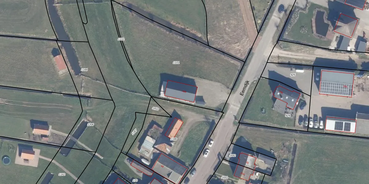 Het perceel waarop Eemdijk 40-b staat heeft een oppervlakte van 2215 m². Dit is een zeer groot perceel. De perceeloppervlakte wordt geregistreerd door het Kadaster. Gedetailleerde informatie over de maten van dit perceel kunt u vinden in het rapport Kadastrale kaart met maatvoering van Eemdijk 40-b.