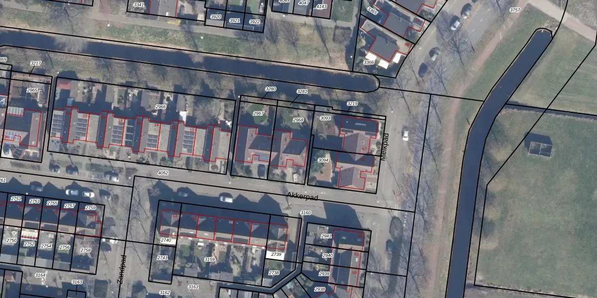 Gebruik de zoekbalk of klik op een perceel voor informatie over de adressen binnen dit perceel.